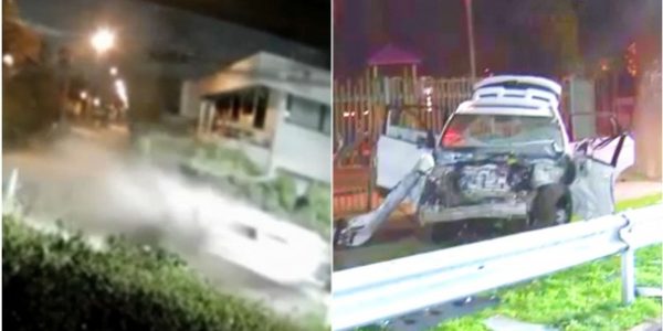 Video capta accidente que dejó 7 heridos: Vehículo huía a 180 km/h de control policial e impactó con un poste y una casa