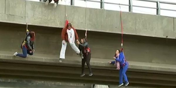 En la mañana de este martes, un grupo de mujeres se colgó con arnés del paso sobre nivel de Américo Vespucio, en la altura de la rotonda Grecia, en la comuna de Peñalolén, Región Metropolitana, resultando una de ellas desmayada. El hecho…